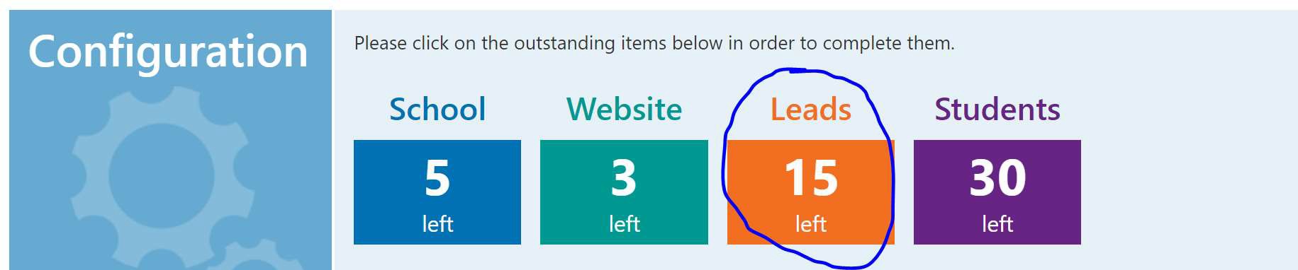 The check list will show you how many items are remaining to be configured for all of the components that your school has purchased. You can click on the number to complete the remaining items. Below the check list you will see links for support if you need any help completing the check list.